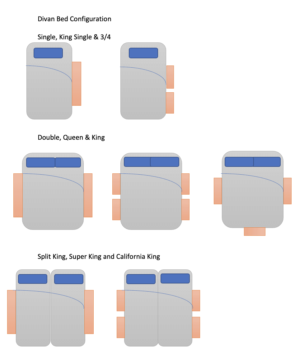 Available in all standard sizes, each Divan Base can be customised with different drawer configurations, drawer sizes, and leg options to achieve your desired height and functionality. For easier delivery and manoeuvrability particularly in homes with stairs or tight access your base can be made as a single solid unit or split into two parts.
