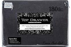 Top Drawer, true quality, 180 Thread Count sheets with a 45cm drop. 100% cotton – preshrunk, cuffed and piped sheets. Yarn dyed for even colour and colour fastness in classic shades that make the sheets a timeless choice.