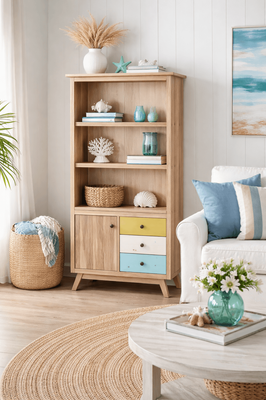 The Casablanca range is a "fun" range of furniture that is loosely based on the retro Danish modern style.The body of the furniture is finished in a brushed acacia timber. Due to the nature of the Acacia timber, the products will come with some natural imperfections. It is this type of timber that gives this range a unique and individual charm.The colours of the timber may vary from piece to piece - this is the art of the rustic charm of the timber.Three different size drawers are painted in a distressed finish in a mixture of a pale blue, green and off white, randomly placed and using three different handles.