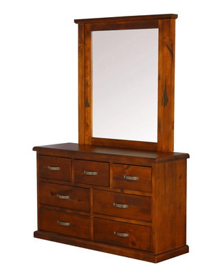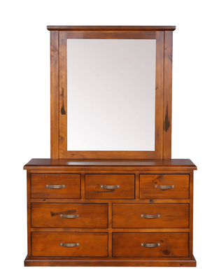 With seven spacious drawers running smoothly on full-extension metal drawer runners, the Settler Dresser provides generous storage for clothing and personal items. The matching mirror completes the piece, making it both practical and stylish for everyday use.