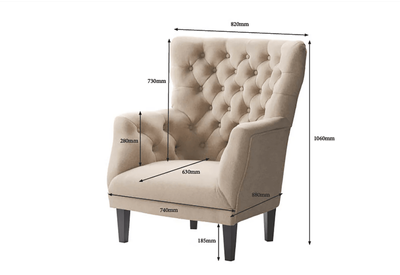 For those who crave the perfect mixture of classic vintage and comfort, this Wingback 1 seat sofa brings it all home. Generous foam padding and soft, charcoal-coloured fabric ensures outstanding style and support. Sit back in the luxurious comfort of this impressive sofa to realise what true relaxation is all about.