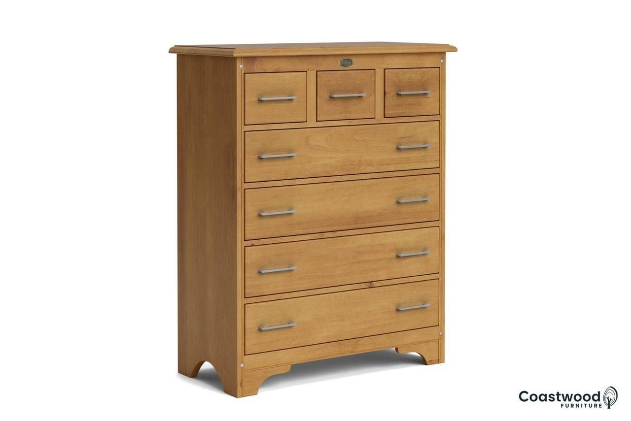 The simple design of the Villager collection is refined with small details, including metal pins and badges and decorative edging. Products are crafted for a long life with solid pine timber and there’s a colour available to fit seamlessly into any home.